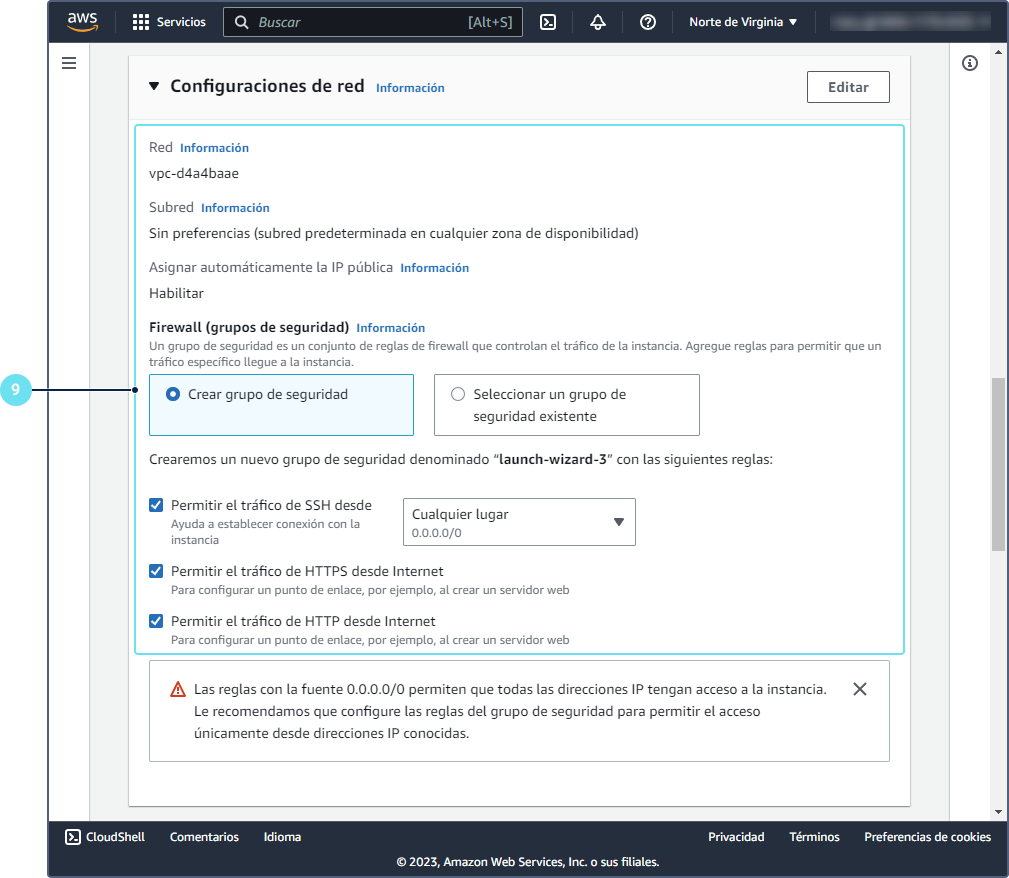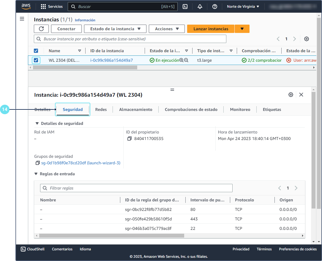 Seleccione la instancia y abra la pestaña Seguridad.