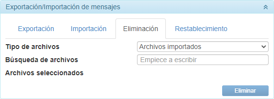 En esta pestaña, puede importar los archivos guardados como resultado de exportación en el sistema de administración.
