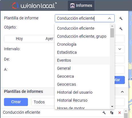 en informes para precisar al conductor, sensor, evento (infracción), ruta o su geocerca y durante la selección de geocercas;