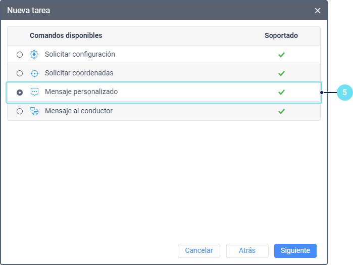 4. Configure los parámetros que dependen del tipo de tarea escogido y se describen en el capítulo Tipos de tareas. Para el tipo Enviar un comando a unidades, este paso se realiza después de la selección de unidades.