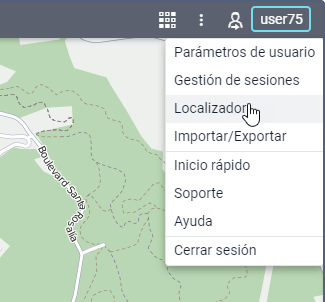 Para abrir la herramienta, vaya al menú del usuario y haga clic en el elemento Localizador.