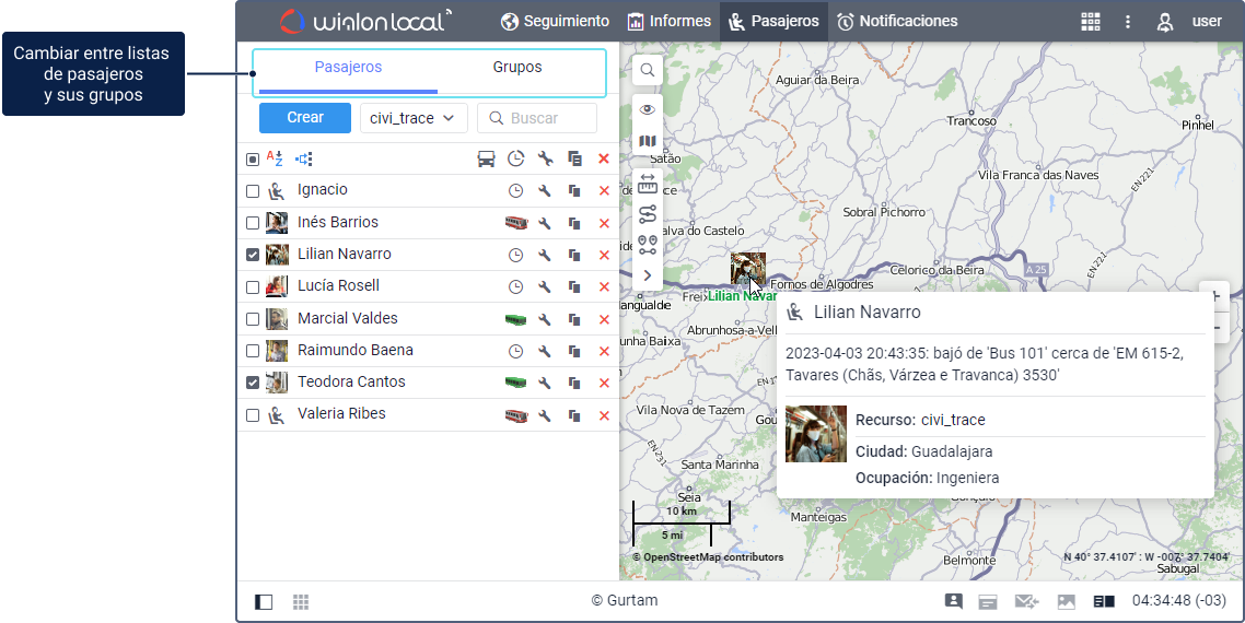 En esta pestaña puede crear pasajeros y agregarlos a las listas de asignación automática a unidades necesarias. Esto permite controlar viajes de pasajeros y utilizar datos recibidos de ellos al seguir unidades, ejecutar informes y configurar notificaciones (vea detalles). Asimismo, aquí se puede realizar las siguientes acciones con pasajeros: gestionar la historia de asignaciones, modificar propiedades, copiar y eliminar.
