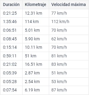- Viajes largos: hasta 3 horas.