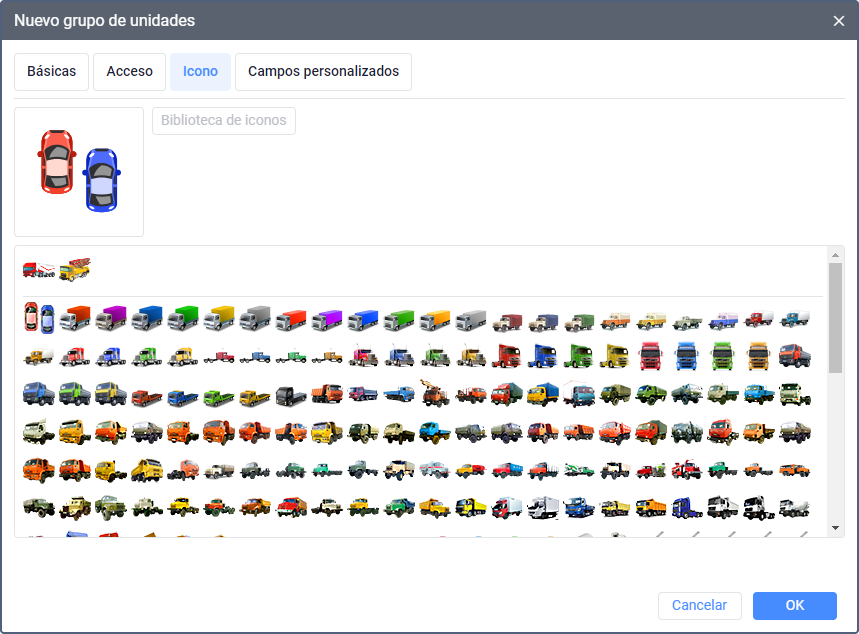 Para ver esta pestaña y escoger un icono para la unidad, se requiere el derecho de acceso Cambiar icono.