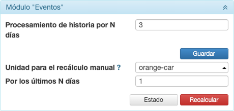 En esta sección de la pestaña Sistema se puede ajustar parámetros de procesamiento de datos en tiempo real, así como volver a calcular los datos ya procesados para una unidad.