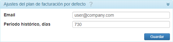 Período histórico, días El período de conservación de los datos para el plan de facturación del usuario raíz (es decir, de todo el servidor). Los mensajes eliminados no pueden ser recuperados al expirar el término indicado. Si el valor introducido es 0, los datos se almacenan durante un período ilimitado.