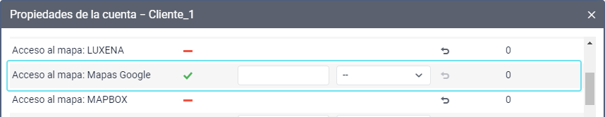 Vaya a las propiedades del plan de facturación o de la cuenta de usuario y busque el servicio correspondiente a la clave de mapa añadida (Acceso al mapa: …).