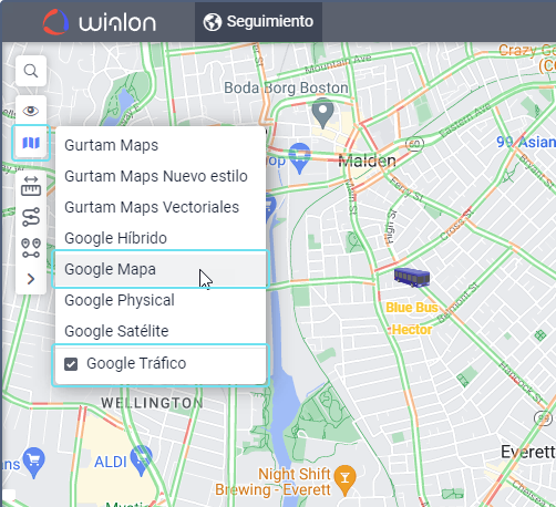 En el rincón superior izquierdo del mapa del sistema de rastreo, pulse el botón