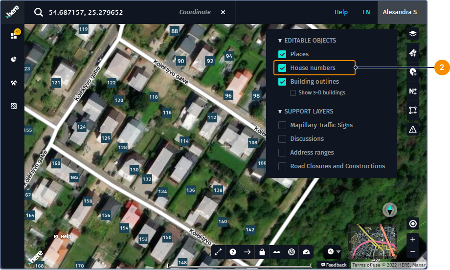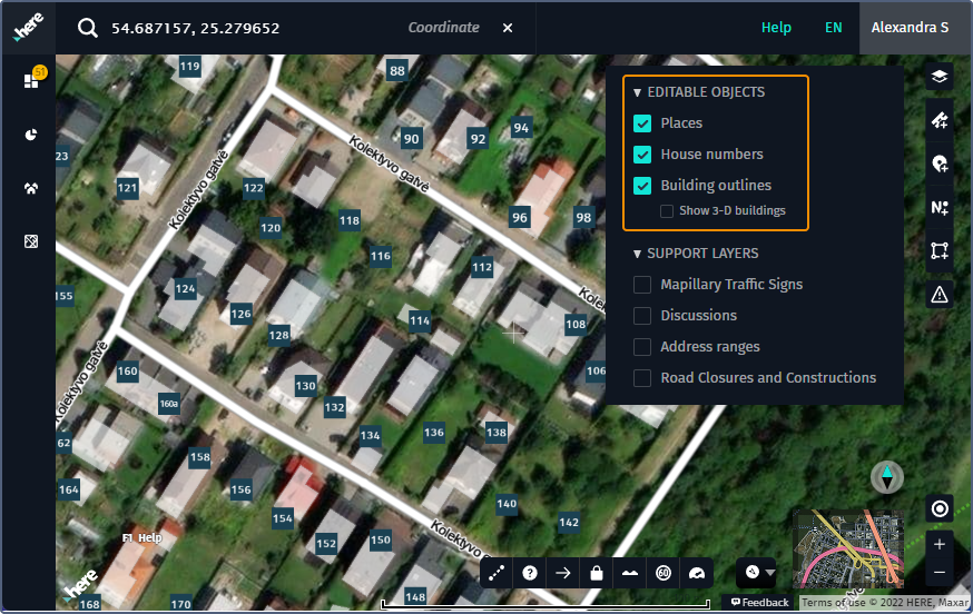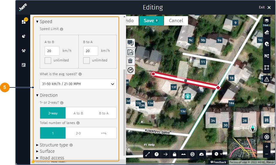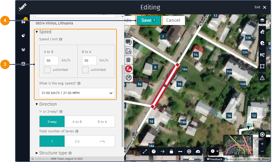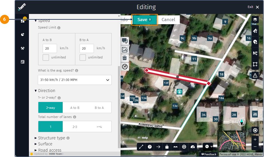 Esta guía describe cómo agregar información de direcciones y límites de velocidad a los mapas HERE empleando HERE Map Creator y actualizarlos. Si encuentra direcciones o límites de velocidad obsoletos o incorrectos en Gurtam Maps, puede realizar cambios en HERE Map Creator. Los cambios serán añadidos a Gurtam Maps por nuestro equipo.