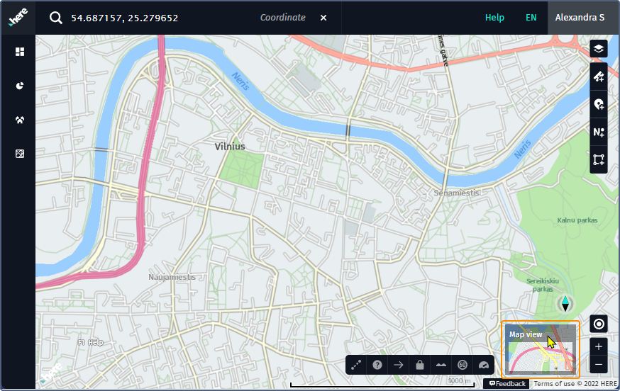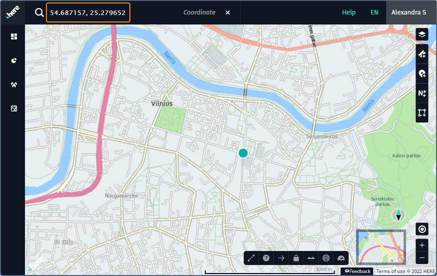 Para empezar a editar el mapa, navegue por él hasta localizar la zona que desea editar. Si conoce las coordenadas de la ubicación deseada, puede introducirlas en la barra de búsqueda.
