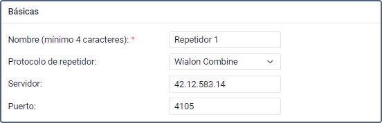 | Nombre* | Indique el nombre del repetidor. El nombre debe contener al menos 4 caracteres. |