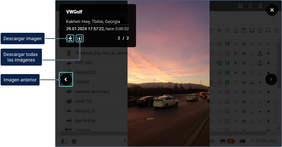 Todas las imágenes recibidas de una unidad se pueden ver en los informes, así como en los mensajes. Los archivos de video se pueden ver en los mensajes.