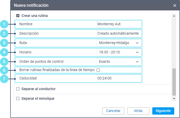 Para este modo de notificación se requiere el derecho de acceso Crear, modificar y eliminar remolques al recurso al que pertenece el conductor.