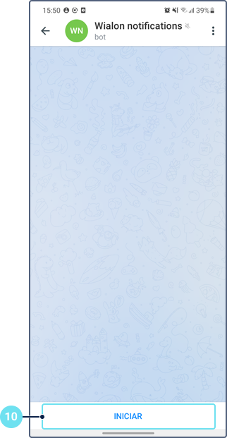 - Apriete el botón Iniciar. Después se muestra el ID del usuario. Para conocer el ID de un otro usuario, envíe cualquier mensaje en su nombre al bot.