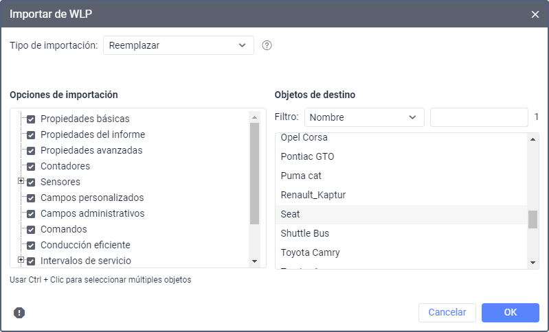 Haciendo clic en el botón Exportar a archivo puede guardar los datos seleccionados de las propiedades de la unidad en un archivo de formato WLP. Para conocer más detalles sobre la función, consulte la página Exportar a WLP.