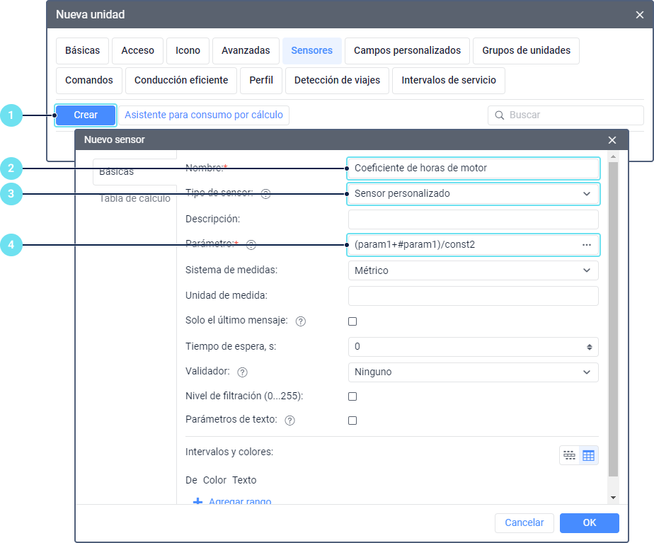 Para crear un sensor de coeficiente de horas de motor, siga los pasos a continuación.