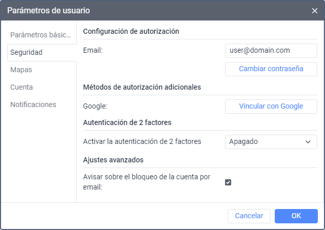 Active la opción para recibir notificaciones sobre el bloqueo de la cuenta al correo electrónico indicado en las propiedades del usuario. Las notificaciones empiezan a enviarse diariamente 5 días antes del bloqueo.
