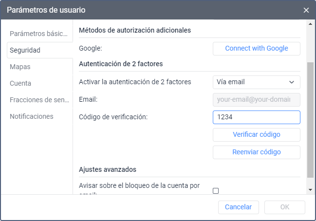 El código se envía al correo electrónico indicado en la configuración de autorización. Para confirmar el correo, haga lo siguiente: