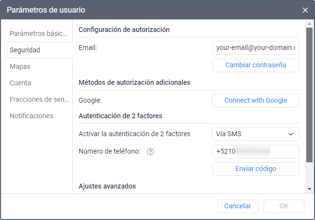 Una vez confirmado el número de teléfono, cada vez que se conecte al sistema de rastreo, será necesario introducir un código enviado a este número.
