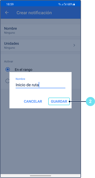 Para crear una notificación para la geocerca, siga los pasos descritos a continuación.