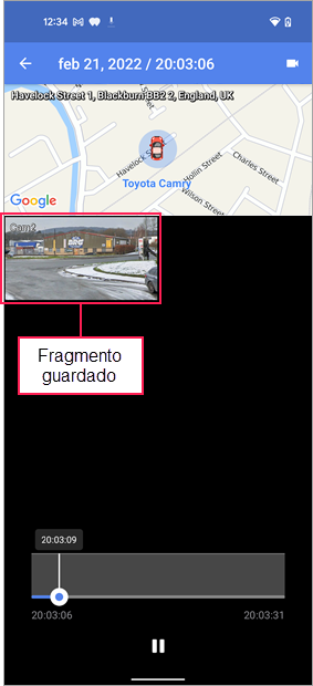 El fragmento de vídeo guardado se muestra encima de la sección con el mapa. Apriete dos veces la sección con el fragmento para que se abra en el modo de pantalla completa.