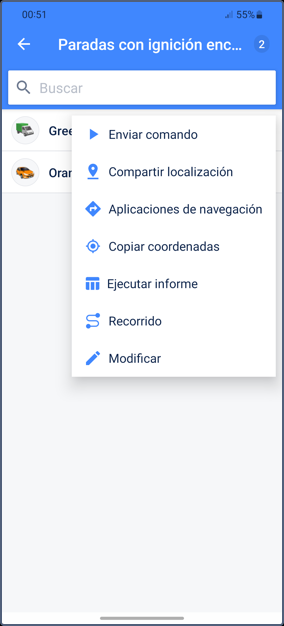 Los datos del resumen están organizados en categorías, cada una mostrando el número de unidades que tienen un estado específico. Para ver la lista de unidades, pulse sobre cualquier categoría. Desde la lista de unidades, puede acceder a la información detallada e historia de la unidad y abrir el menú de unidad.