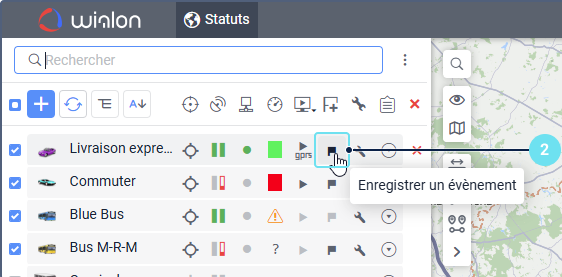 - Assurez-vous que l’unité pour laquelle vous souhaitez enregistrer une charge de batterie est ajoutée au panneau de statuts dans l’onglet Statuts et que l’option Enregistrement d’événement est activée pour le panneau de statuts.