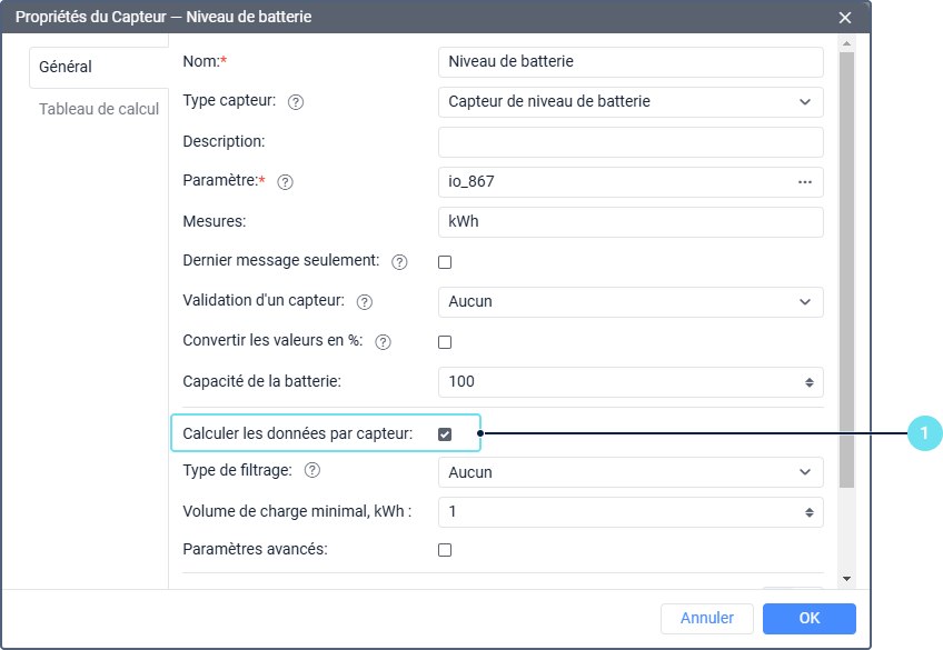- Assurez-vous que l’option Calculer les données par capteur est activée dans les propriétés du capteur.