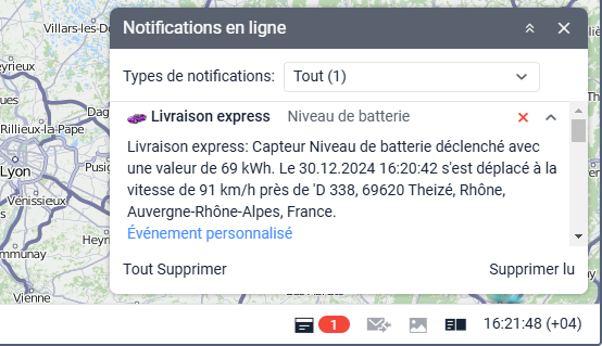 Par conséquent, la notification sera déclenchée après la détection d’une charge et le respect des conditions de déclenchement supplémentaires définies dans les paramètres de notification, le cas échéant. Après le déclenchement, l’action que vous avez sélectionnée sera exécutée.
