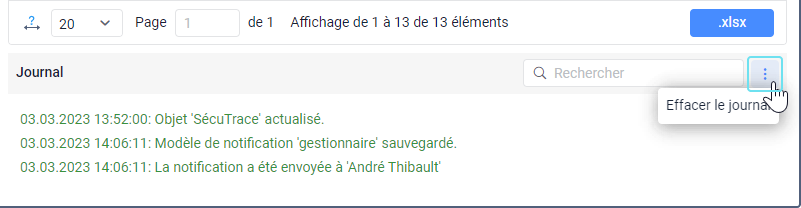 dans le coin supérieur droit et sélectionnez Effacer le journal.