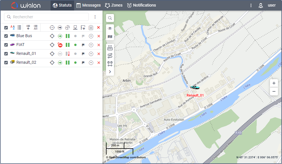 Le système de suivi est utilisé par les utilisateurs finaux pour contrôler leurs unités (flotte de véhicules, machines, employés, animaux domestiques, etc.).