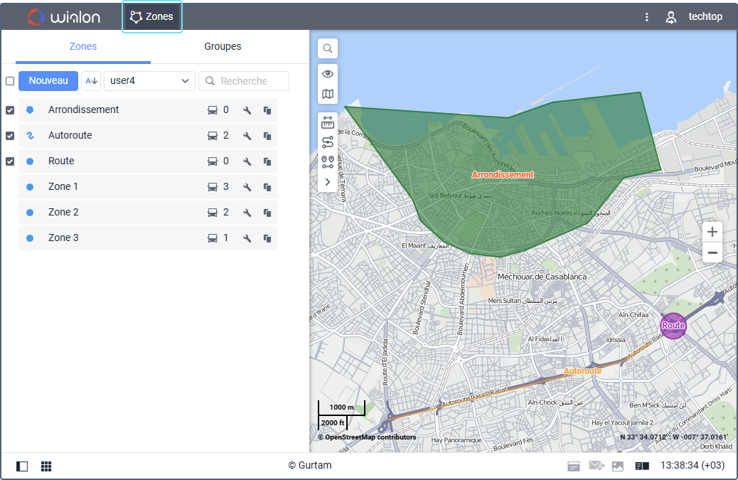 Les zones, ou les zones géographiques, sont des zones spécifiques sur la carte utilisées pour suivre les unités à l’intérieur ou à l’extérieur de ces zones.