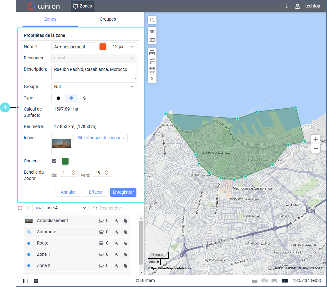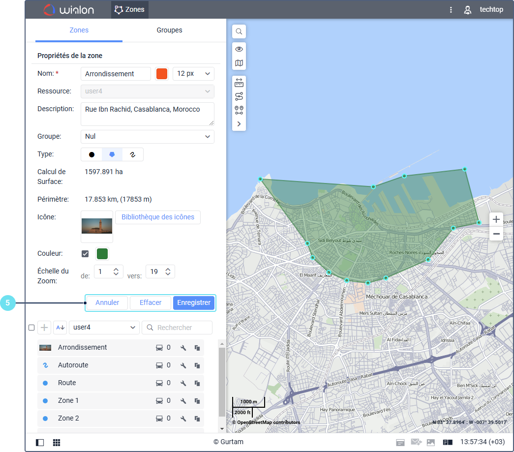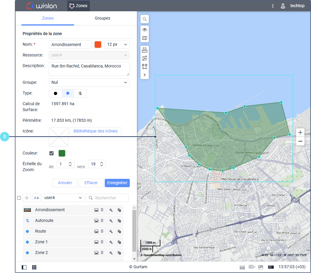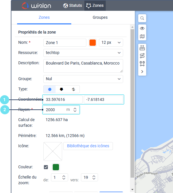 - Sélectionnez le type de zone : polygone, ligne ou cercle.
