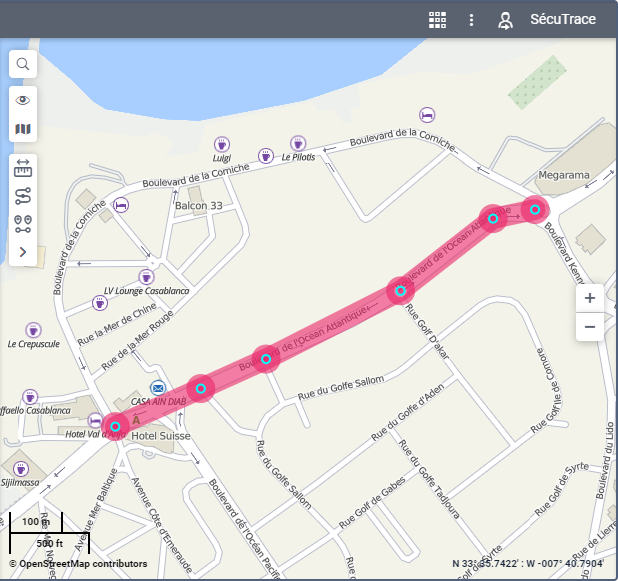 Vous pouvez également créer une zone sous la forme d’une ligne en enregistrant un itinéraire en tant que zone. Cette fonction est disponible dans l’outil Calcul d’itinéraire.