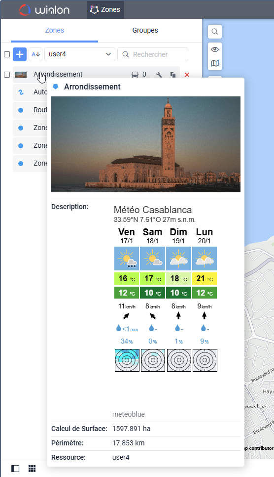 - nom de la ressource à laquelle appartient la zone (si plusieurs ressources sont disponibles) ;