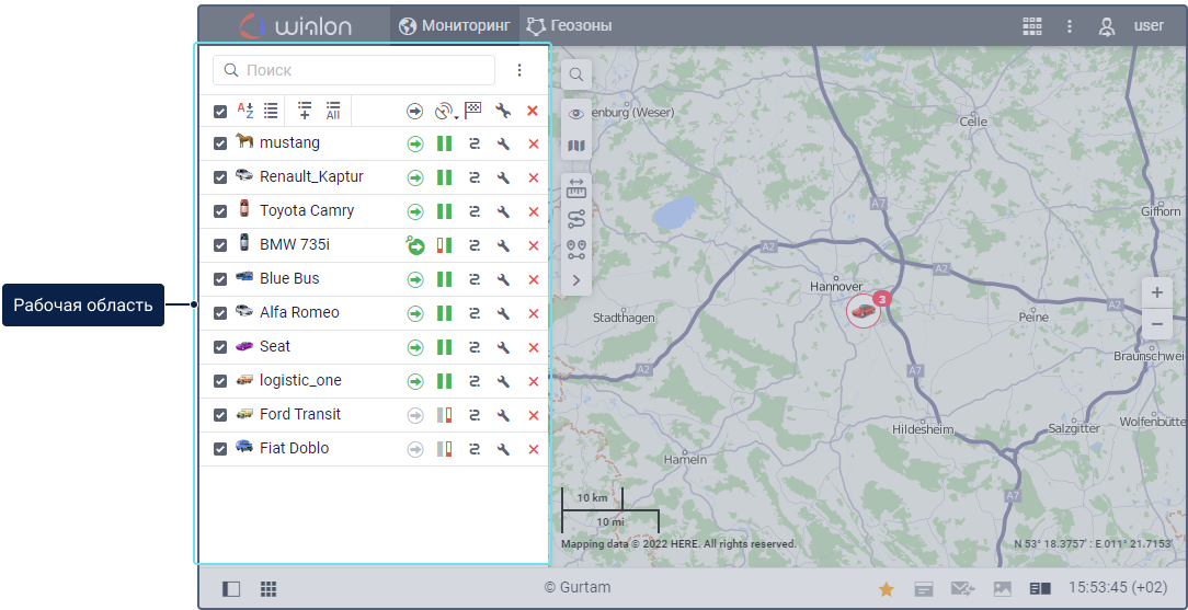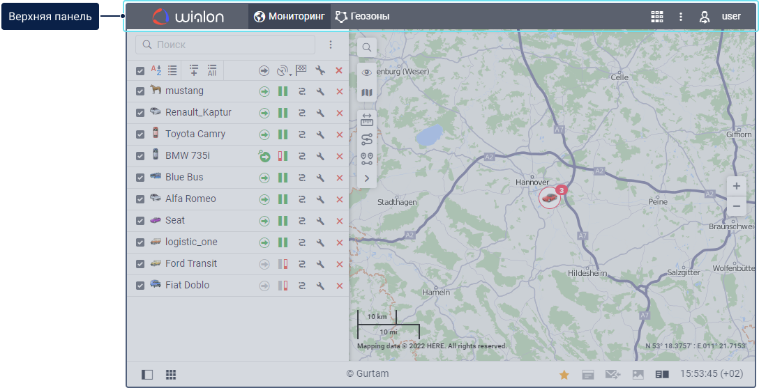 Les principaux éléments suivants peuvent être distingués dans l’interface du système :