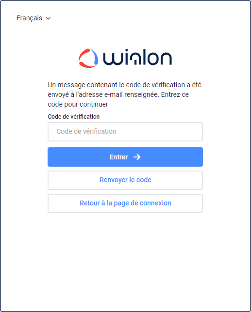 Pour un compte dont l’authentification à deux facteurs est activée, un code de vérification doit être saisi lors de la connexion, en plus du mot de passe. Il est envoyé par e-mail ou par SMS. Le code envoyé est valable pendant 2 heures.
