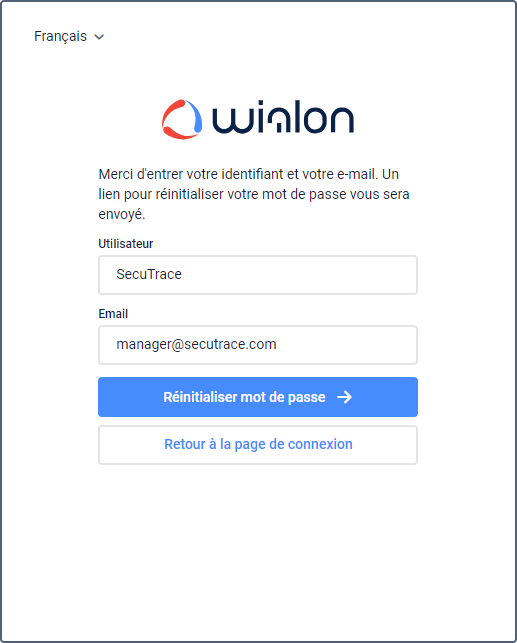 Si vous êtes déjà un utilisateur de Wialon et que vous avez oublié votre mot de passe, veuillez suivre les étapes ci-dessous :