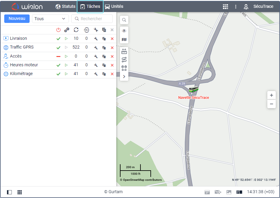 Une tâche est un ensemble d’actions exécutées automatiquement selon le calendrier spécifié. Ces actions incluent l’envoi d’une commande, l’envoi d’informations sur le carburant, la modification des droits d’accès, etc. Il existe 7 types de tâches.