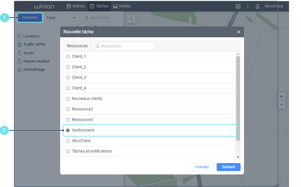 Sélectionnez la ressource où la tâche doit être stockée si vous avez plusieurs ressources disponibles.