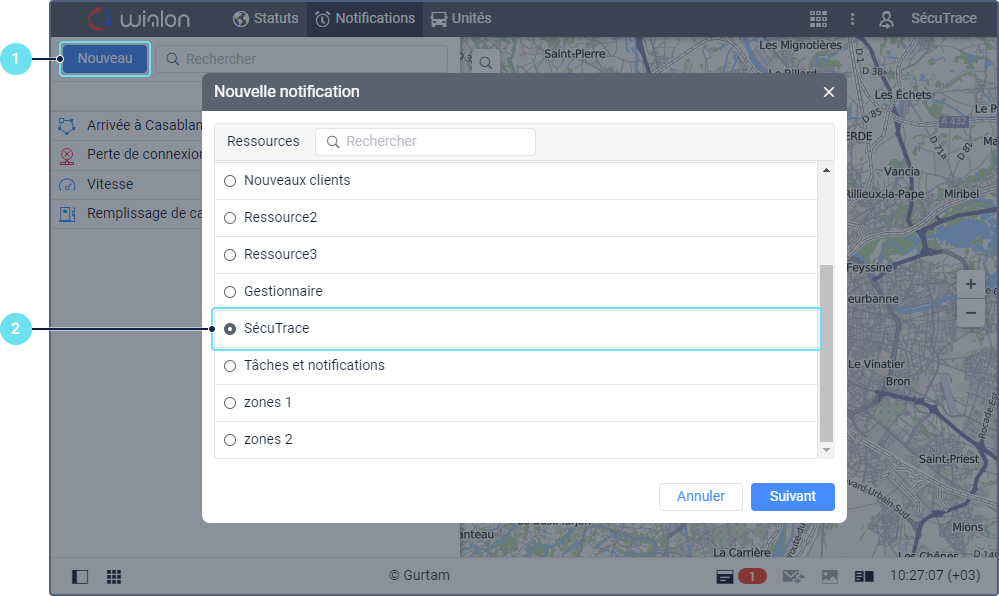 Sélectionnez la ressource dans laquelle la notification doit être stockée, si vous avez plusieurs ressources disponibles.
