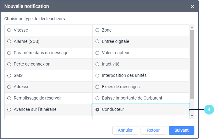 Définissez les paramètres qui dépendent du type de notification sélectionné et sont décrits en détail sur la page Types de notification.