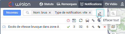 La liste des notifications est filtrée dynamiquement de manière à n’afficher que les notifications qui correspondent à la requête saisie. Pour effacer une requête, cliquez sur l’icône