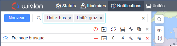 Unité | Le nom de l'unité. Lorsque ce critère est appliqué, les notifications dont l'unité spécifiée est sélectionnée dans leurs propriétés restent dans la liste. Les notifications créées pour un groupe d'unités sont également affichées, si l'unité spécifiée en fait partie. Une notification peut être créée pour plusieurs unités. Pour spécifier plusieurs unités, vous devez ajouter ce critère pour chaque unité. |