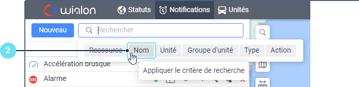 Sélectionnez le critère souhaité. Par exemple, si vous vous souvenez du nom de la notification, sélectionnez le critère Nom.