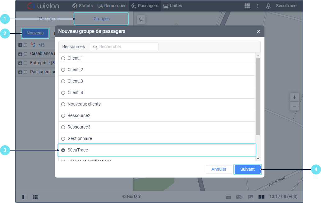 Sélectionnez la ressource dans laquelle vous souhaitez créer un groupe de passagers. .