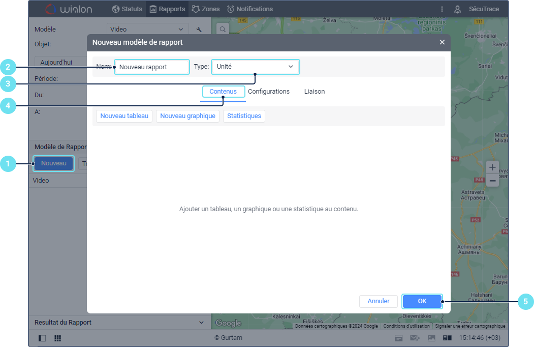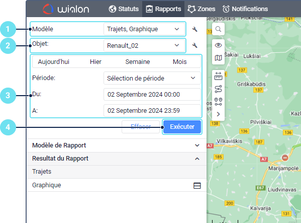 Les rapports dans Wialon peuvent être exécutés à l’aide de modèles préalablement créés. Le modèle contient des informations sur les tableaux et les graphiques qui peuvent être inclus dans le rapport, ainsi que ses paramètres.