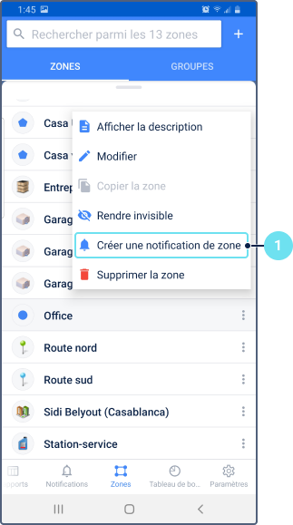 Pour créer une notification pour une zone, suivez les étapes ci-dessous.
