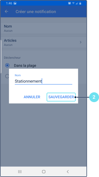 - Saisissez le nom de la notification et appuyez sur Sauvegarder.