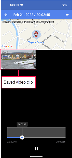 Le fragment de la vidéo enregistré est affiché sous la section de la carte. Appuyez deux fois sur la section du fragment pour l’ouvrir en plein écran.